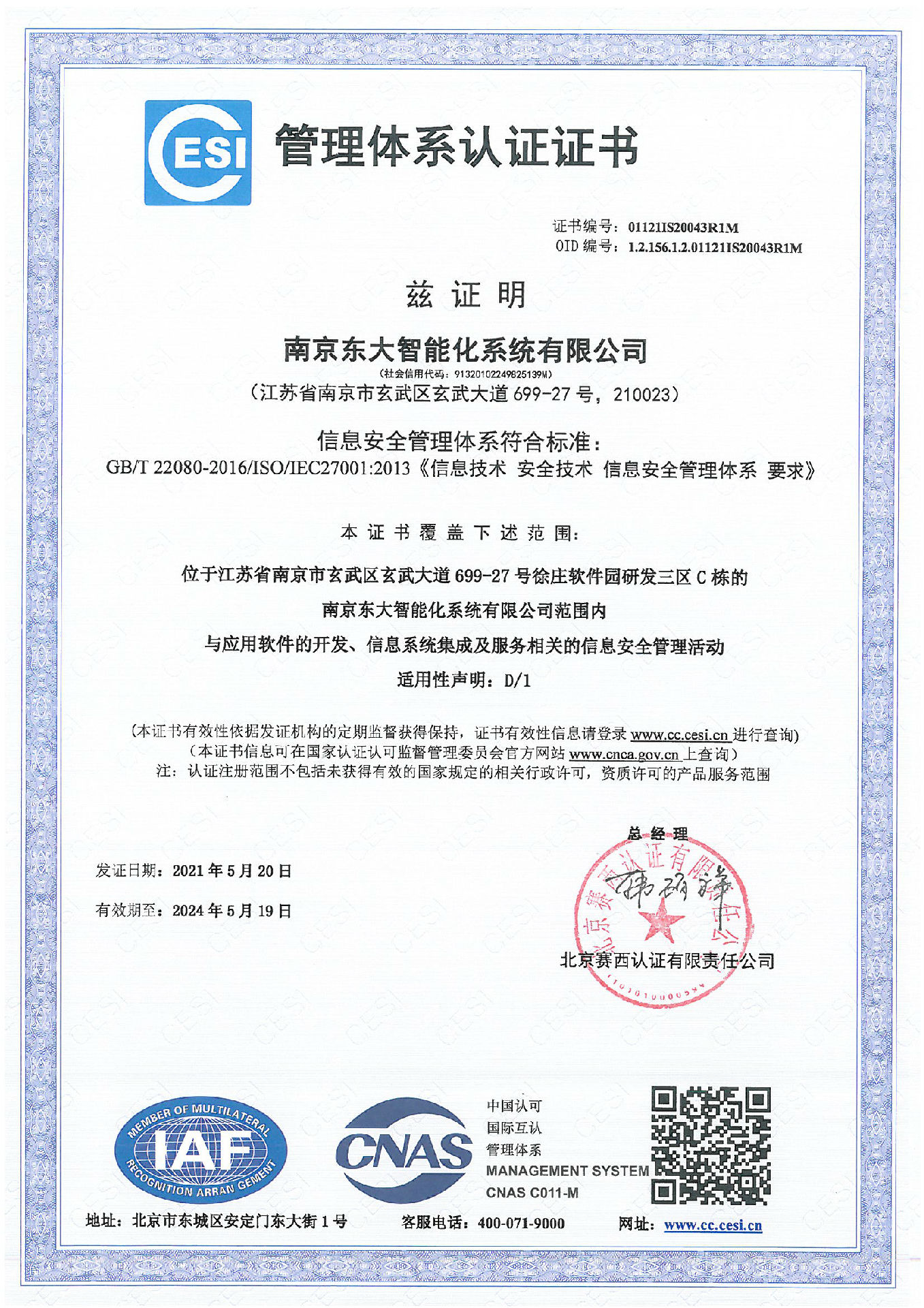 信息安全管理體系證書