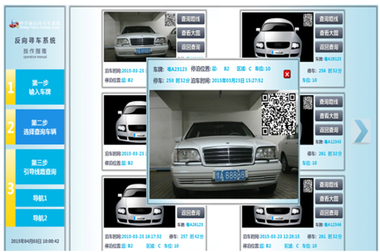 該系統(tǒng)同時還結(jié)合了反向?qū)ぼ嚬δ埽谏虉?、購物中心等大型停車場?nèi),車主在返回停車場時往往由于停車場空間大,環(huán)境及標志物類似、方向不易辨別等原因,容易在停車場內(nèi)迷失方向,尋找不到自己的車輛。反向?qū)ぼ囅到y(tǒng)通過進場之后刷卡簽停的形式,在用戶尋找車位時實現(xiàn)了在查詢端刷卡、條形碼,顯示車主及車輛所處的位置,幫助顧客盡快找到車輛停放的區(qū)域。