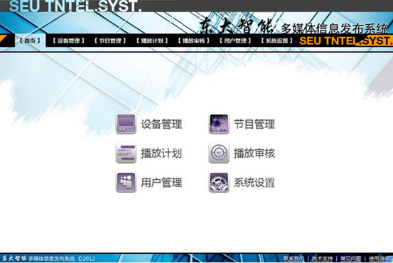 1)多媒體信息發(fā)布中心:對多媒體信息發(fā)布的播出內(nèi)容、播出設(shè)備、播出系統(tǒng)的進(jìn)行控制與管理的中樞。