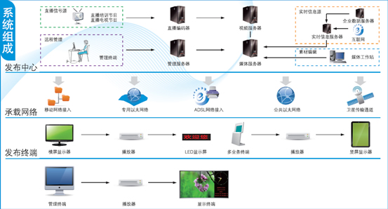 2)多媒體信息承載網(wǎng)絡(luò):為信息發(fā)布提供傳輸和管理通道的網(wǎng)絡(luò)。